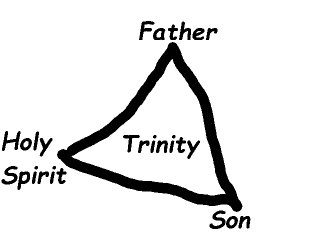 Generally the word in the middle was “God” (not “Trinity”) with “is” pointing out from that center to each of the three points of the triangle: God is the Father, God is the Son, God is the Holy Spirit. And “is not” ran along each of the three sides: the Father is not the Son, the Son is not the Spirit, and so forth.